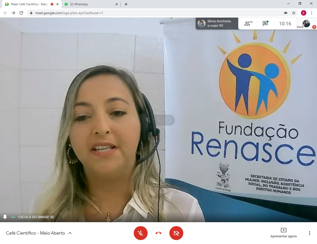 O Núcleo Estadual da Escola do Sinase (NEES/Sistema Nacional de Atendimento Socioeducativo), vinculado à Fundação Renascer, realizou mais uma edição do “Café Científico sobre Socioeducação: Textos e Contextos”, na última terça-feira (13), através da plataforma virtual Google Meet. Com o tema “Discutindo Medida Socioeducativa em Meio Aberto: de uma ótica nacional para um recorte do cenário sergipano”, o encontro contou com palestras de Ana Paula Lomes [referência técnica estadual para o Serviço de Proteção Social a Adolescente em Cumprimento de Medida Socioeducativa em Meio Aberto, da Secretaria de Estado da Inclusão e Assistência Social – SEIAS], e de Emilly Regina Freire Nardelli [professora de Serviço Social na Universidade Federal de Sergipe – UFS e atual secretária municipal de Assistência Social da Barra dos Coqueiros].