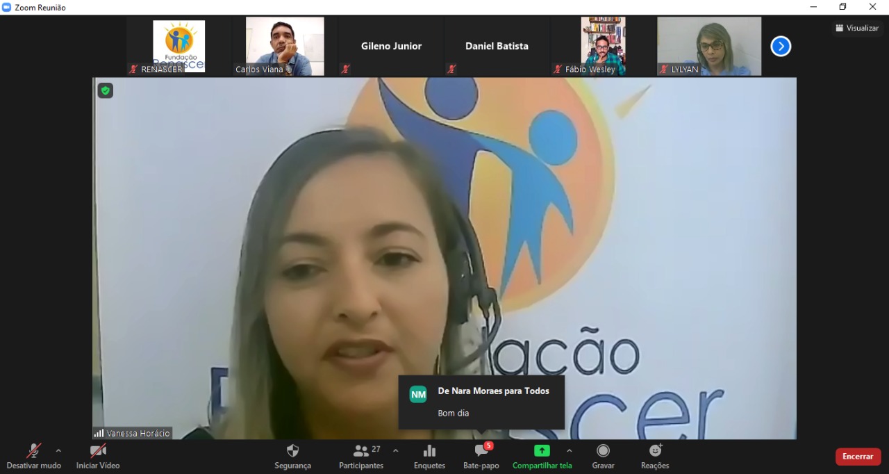 Através da plataforma Zoom, participaram do encontro cerca de 40 profissionais socioeducativos e do Sistema de Garantia de Direitos da criança e do adolescente. O espaço promoveu a 3ª Discussão Ampliada no modelo de “Círculos Formativos” do Café Científico, que visa debater ações nas unidades socioeducativas. A discussão teve como foco principal atividades e ações participativas propostas pela Diretoria Operacional (Dirop) da Fundação Renascer, a partir da apresentação do capítulo três do livro “Reflexões da Gestão de Unidades Socioeducativas”, lançado em 2020 pelo escritor e diretor operacional da Renascer, Antônio Carlos Viana.