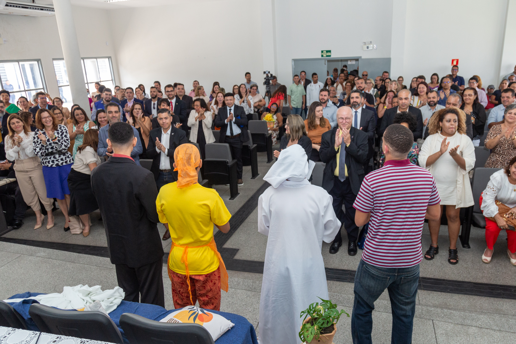 Durante a cerimônia, um grupo dos socioeducandos realizaram uma apresentação teatral. O protagonista da peça se juntou às autoridades no dispositivo. O socioeducando disse estar muito honrado por estar compondo a mesa de abertura e agradeceu aos colegas de convivências e as autoridades presentes. “Cometi um ato infracional, mas não era esse o caminho que queria. Não pretendo que tenham dó, nem pena de mim. Quero que através da minha experiência e relato, todas as crianças e adolescentes, que se encontram na periferia, tenham outras oportunidades”, relatou o socioeducando.